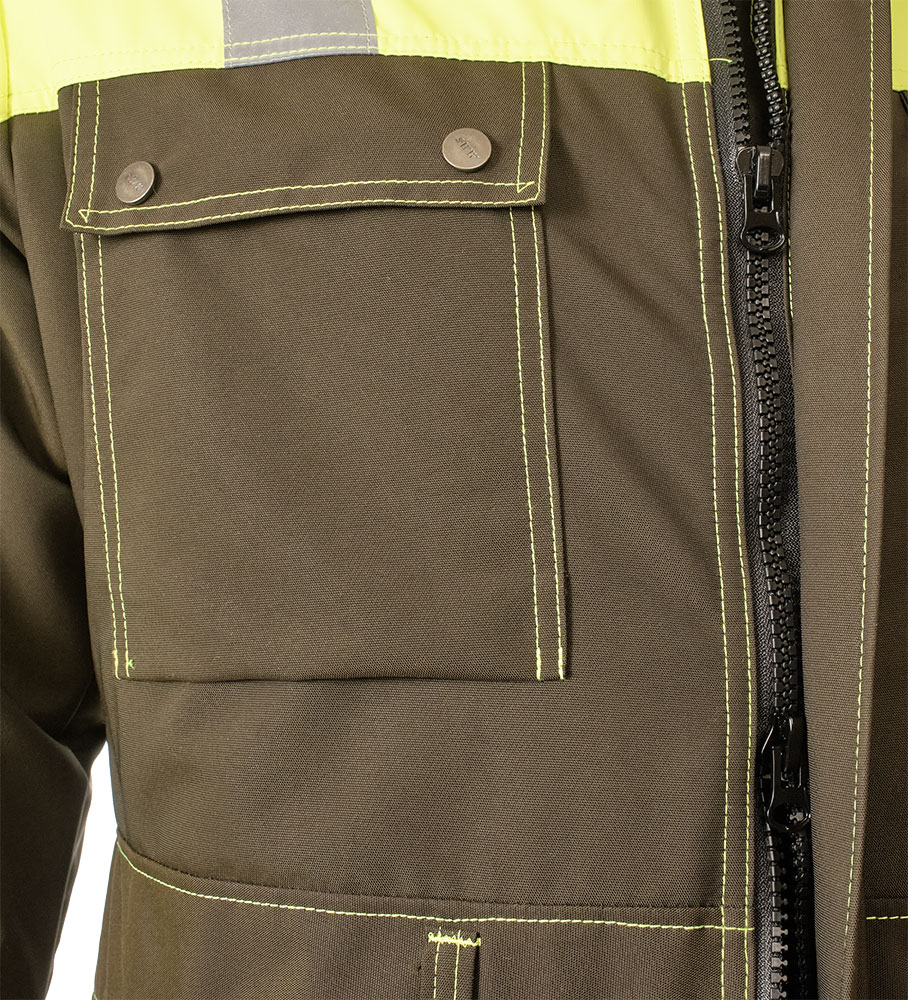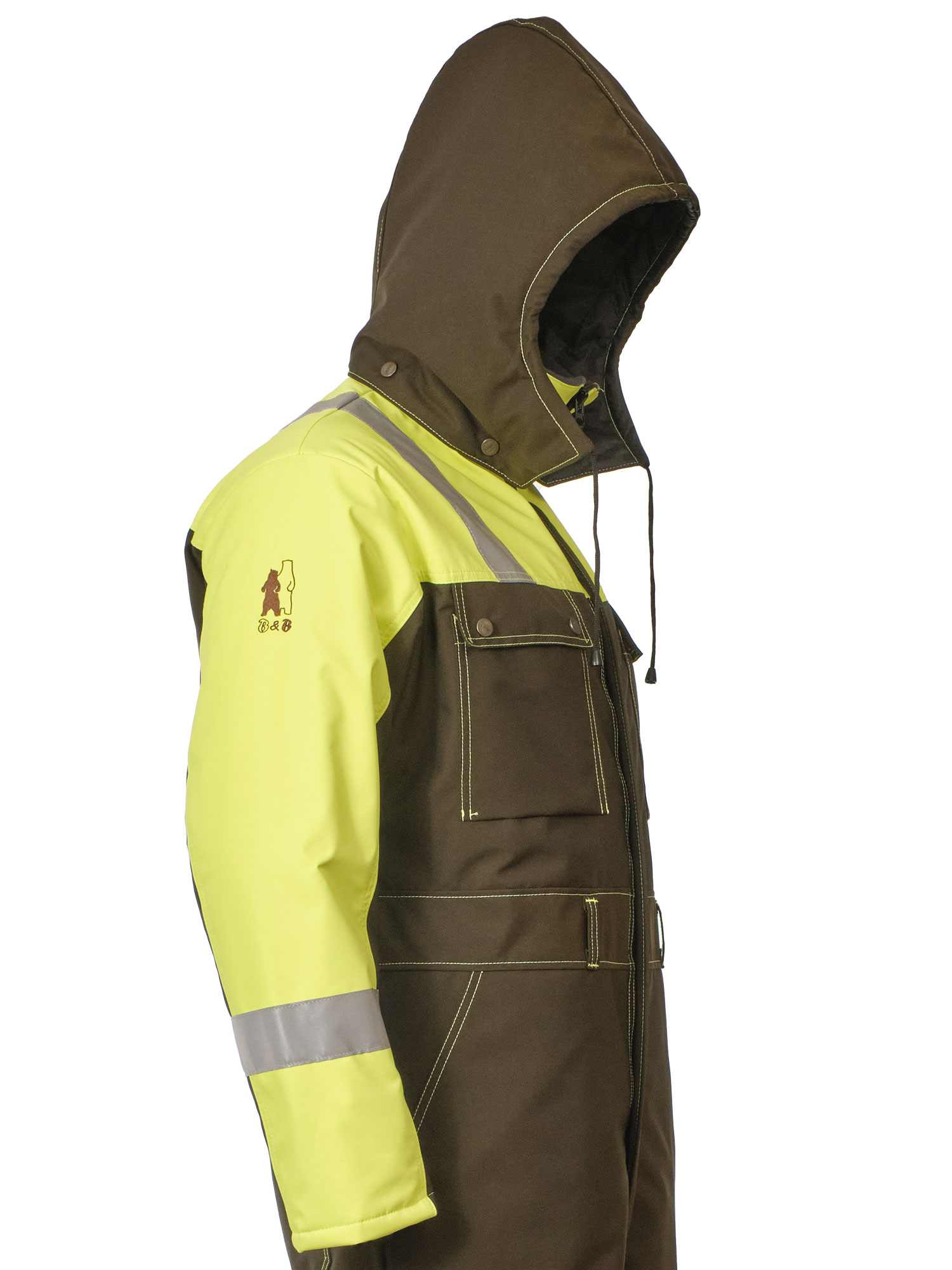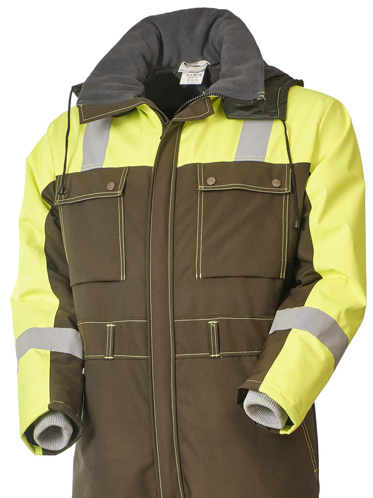 Рабочий зимний мужской комбинезон двухцветный 888N-OXF-64/71 на стеганой подкладке. Низ у штанин с молниями, чтобы можно было регулировать их ширину в зависимости от надетой обуви. В шести карманах найдется место для телефона, документов и других необходимых вещей. Трикотажные манжеты рукавов защитят от продувания, а капюшон от ветра и снега. Световозвращающие ленты и яркая расцветка сделают работника более заметным в темное время суток или при плохой погоде.