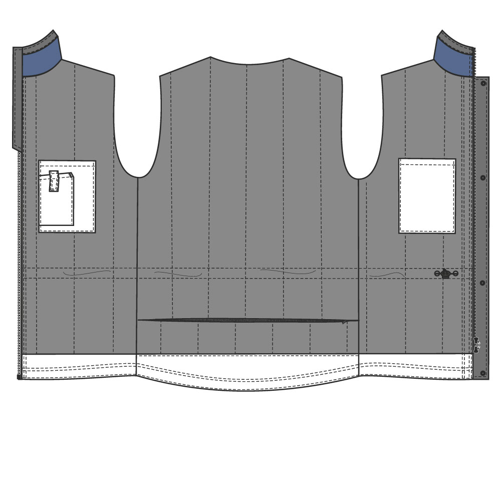 - Кокетки, воротник, капюшон изготовлены из отделочной ткани, отделка кокеток — световозвращающий кант.