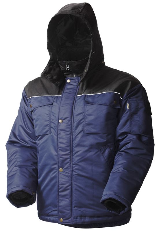 Рабочая зимняя мужская куртка 432С(419-С)-TWILL FZ-15/90 на стеганой подкладке с удлиненной спинкой. В семи карманах найдется место для телефона, документов и других необходимых вещей. Трикотажные резинки рукавов защитят от продувания, отстёгивающийся капюшон — от ветра и снега, световозвращающий кант сделает работника более заметным в темное время суток или при плохой видимости.