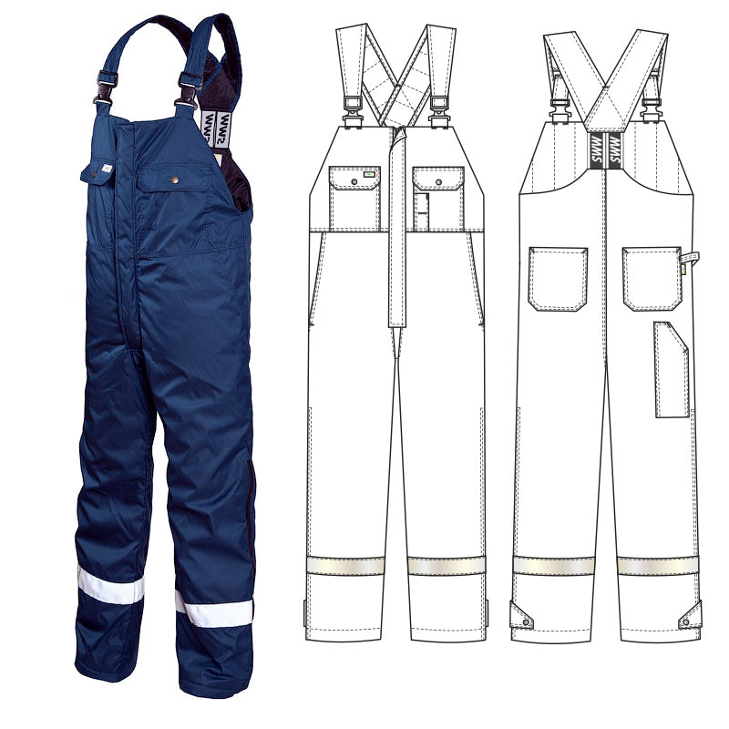 Рабочий зимний мужской полукомбинезон 42R-PP-15 на стеганой подкладке. Восемь карманов. Регулируемые бретели. Низ у штанин с молниями, чтобы можно было регулировать их ширину в зависимости от надетой обуви. Световозвращающая лента для повышения уровня безопасности при работе в темное время суток или при плохой видимости. Полукомбинезон можно носить с одной изподходящих зимних курток.
